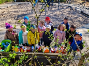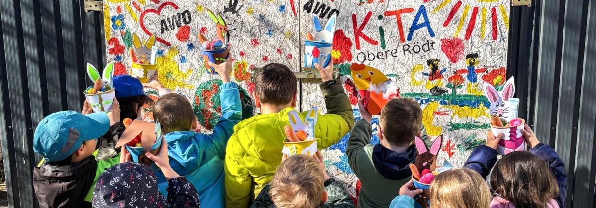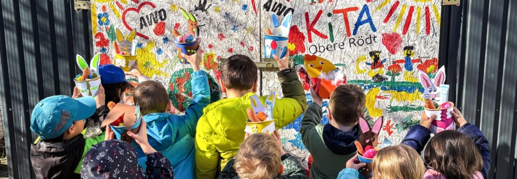 An Ostern durften die Kita-Kinder unserer Kita Obere Rödt Osternester suchen. Diese Osternester wurden im Voraus bei einer kreativen Eltern-Kind-Bastelaktion an zwei Abenden in der Osterwoche unter Anleitung der pädagogischen Fachkräfte hergestellt. Aus bunten Blumentöpfen und süßen, gebastelten Papp-Osterhasen wurden so kleine Geschenknester mit Möhren, bunten Eiern und anderen Leckereien gestaltet. Voller Neugier gingen unsere Kita-Kinder auf die Suche und präsentierten am Ende stolz ihre farbenfrohen Osterfunde. Alle Beteiligten hatten dabei viel Spaß.