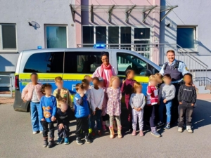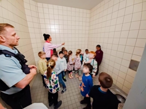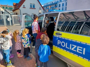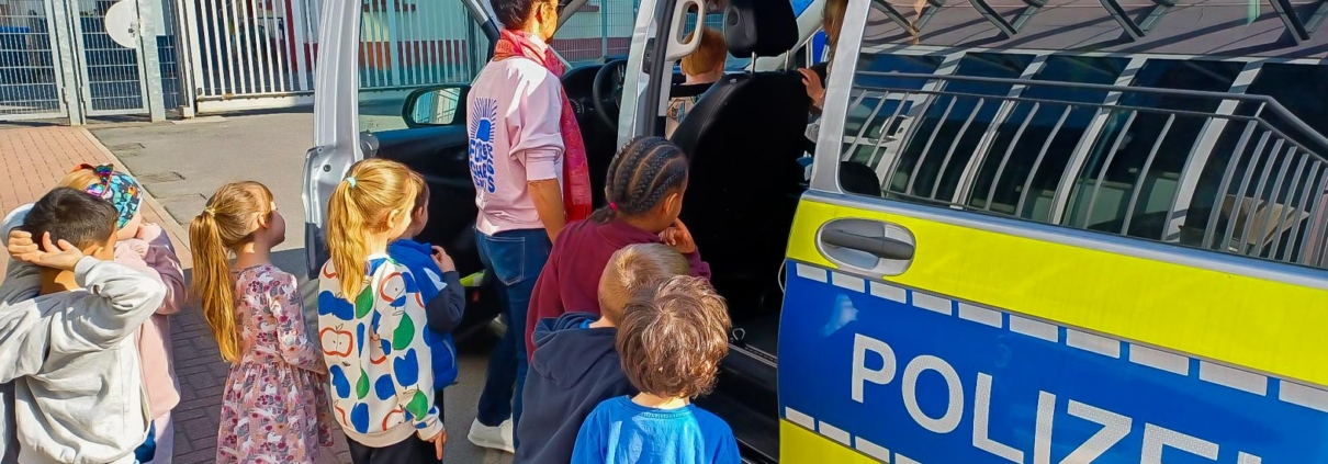 Vorletzte Woche waren die Vorschüler*innen unserer Kita Farbenreich gemeinsam auf einem Ausflug beim Polizeirevier Heidelberg Süd. Vor Ort wurden sie von den Polizist*innen empfangen und sie konnten viele Fragen stellen und das Polizeiauto unter die Lupe nehmen. Sogar die Gefängniszelle durften die Kinder sich anschauen! Zum Abschluss haben sie ihre Fingerabdrücke genommen und eine Urkunde bekommen. Alle Kinder hatten viel Spaß und konnten viel lernen.