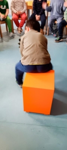 Im nächsten Abschnitt demonstrierte Nina unseren pädagogischen Fachkräften und den Kindern mit einem hartgekochten Ei und einem kleinen Styropor-Eier-Helm, aus welcher Höhe es gefährlich ist, ohne Helm zu fallen und wie wichtig es ist, einen Helm zu tragen beim Fahrrad-, Rollerfahren usw. Die Kinder durften dies auch ausprobieren mit einem Ei und einem kleinen Eier-Helm.