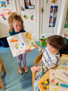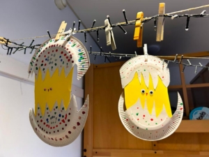 In der Leoparden-Gruppe fand in der Ruhephase eine Bilderbuchbetrachtung von „Der Regenbogenfisch“ statt. Dadurch wurde bei den Kindern das Interesse geweckt, ihre eigenen Bücher mitzubringen. Anschließend malten die Kinder ihren eigenen Regenbogenfisch.