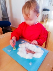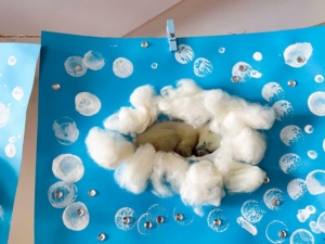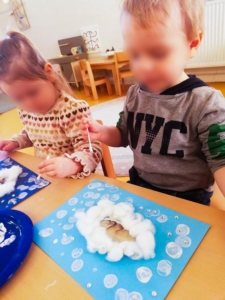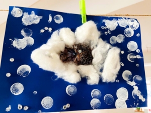Ende letzten Jahres haben die Kinder unserer Kitas Kirchheim viel Spaß mit dem Thema Winterschlaf gehabt. So spielten die Kindergartenkinder im Freispiel den Winterschlaf der Tiere nach. Außerdem veranstalteten die Erzieher*innen ein Bastelangebot in der Krippe. Die Kinder durften sich ein „Winterschlaftier“ aussuchen und in den Winterschlaf versetzen. Perfektioniert wurden die Kunstwerke mit Watte, Farbe und Klebepunkten, um den Schnee darzustellen. Alle Beteiligten, groß und klein, hatten sehr viel Spaß.