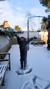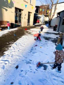 Besonders für die Kindergartenkinder in unseren Kitas Kirchheim war dieses Wetter die ideale Gelegenheit, um draußen zu spielen, Spaß zu haben und das kalte, weiße Nass zu genießen. Für die Krippenkinder war es eine besondere Erfahrung das neue Element „Schnee“ zu erkunden, damit Schneeburgen zu bauen, mit einem Schneeschieber wegzuschieben und andere einzigartige Dinge auszuprobieren. Damit startete das neue Jahr für unsere Kita-Kinder direkt mit einem schönen Highlight von Mutter Natur.