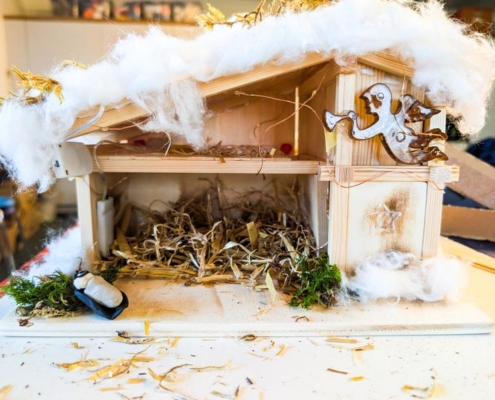 In der Hektik der Vorweihnachtszeit wollte unsere RÖHRE bewusst einen Moment der Ruhe und des Miteinanders schaffen – mit Holz, Farbe, Fantasie und ganz viel Freude. Es wurde gemeinsam Figuren, Ställe und kleine Landschaften gesägt, geklebt, gemalt und gestaltet. Dabei entstanden nicht nur wunderschöne, individuelle Krippen, sondern auch wertvolle Erinnerungen an eine besondere Zeit mit der Familie.