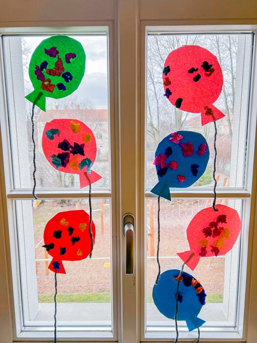 So haben die Kinder der Nilpferdgruppe aus Tonpapier bunte Clowns gebastelt. Die Leopardenkinder haben bunte Hüte und Luftballons gestaltet. In der Pinguingruppe wurde von den Kindern eine schöne bunte Tischdecke zum gemeinsamen Faschingsfrühstück hergestellt.