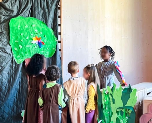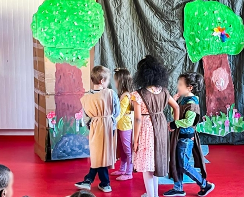 Die Kita-Kinder unserer Kita Farbenreich haben in den vergangenen Wochen regelmäßig eine Theateraufführung geprobt. In aufwändiger Arbeit wurden das Bühnenbild sowie die Kostüme gestaltet, welche an das Buch, das zur Vorbereitung als Vorlage diente und häufig gelesen wurde, angelehnt waren. Außerdem wurden Tickets gestaltet, die allen Besucher*innen am Tag der Aufführung ausgehändigt wurden.