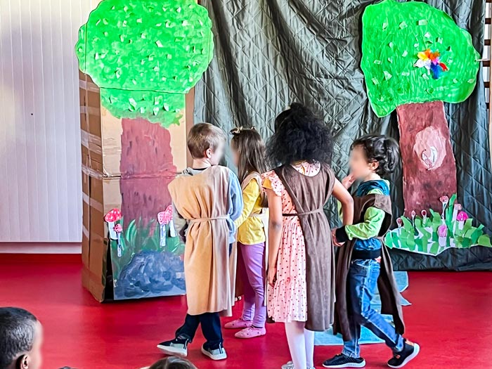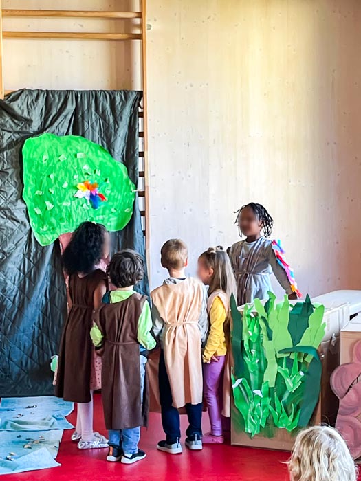 Die Kita-Kinder unserer Kita Farbenreich haben in den vergangenen Wochen regelmäßig eine Theateraufführung geprobt. In aufwändiger Arbeit wurden das Bühnenbild sowie die Kostüme gestaltet, welche an das Buch, das zur Vorbereitung als Vorlage diente und häufig gelesen wurde, angelehnt waren. Außerdem wurden Tickets gestaltet, die allen Besucher*innen am Tag der Aufführung ausgehändigt wurden.