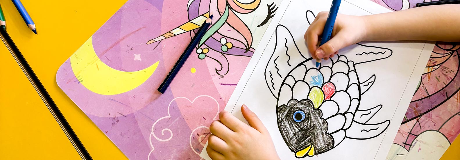 In der Leoparden-Gruppe fand in der Ruhephase eine Bilderbuchbetrachtung von „Der Regenbogenfisch“ statt. Dadurch wurde bei den Kindern das Interesse geweckt, ihre eigenen Bücher mitzubringen. Anschließend malten die Kinder ihren eigenen Regenbogenfisch. Das Angebot förderte nicht nur die Sprachentwicklung, indem es den Wortschatz erweiterte und die Kita-Kinder lehrte, zuzuhören. Auch wurden ihre Fantasien angeregt, die Empathie durch Wertevermittlung (zum Thema Teilen mit anderen) wurde gefördert, sowie die Gefühlsregulation, sich selbst in den Figuren wiederzuerkennen (z.B eigene Ängste oder Freude).