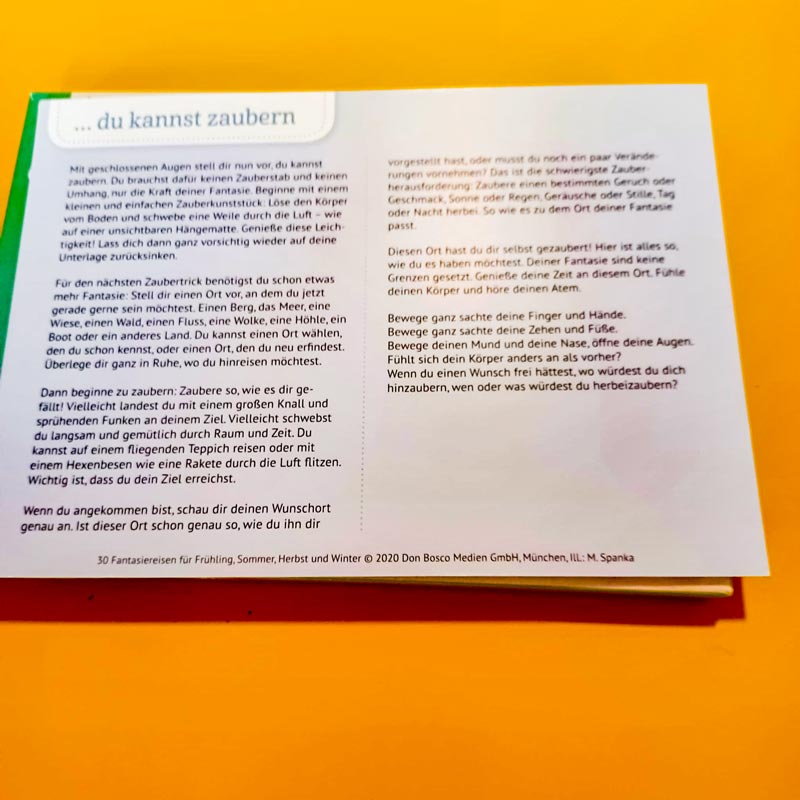 In der Pinguingruppe unserer Kita Obere Rödt wurde durch die 4 Jahreszeiten daher die Fantasiereise „Stell dir vor, Du kannst zaubern“ erlebt. Dort ging es darum, dass jedes Kind zaubern durfte, was es mochte. Anschließend malten die Kinder ihren Zauber als Bilder. Bei diesem Angebot wurden die Sprachentwicklung, Merkfähigkeit und Feinmotorik gefördert und die Fantasie der Kita-Kinder wurde angeregt.