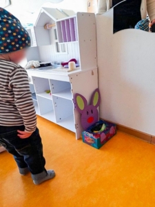 Mit Ostereierfarben und Handschuhen ging das auch ganz einfach und jedes Kind, das wollte, durfte sich seine Farben aussuchen. Diese wurden auf dem Handschuh verteilt und dann erstmal zwischen den Händen vermischt. Anschließend wurde das Ei in die Hände genommen und so bekam jedes Ei seine persönliche Note. Manche Kinder suchten dabei nur die Farben aus, andere waren tatkräftig beim Färben dabei. Nachdem die Eier getrocknet waren, wurden die Osternester damit bestückt. Am Tag der großen Suche gingen unsere Kita-Kinder voller Freude auf Entdeckungstour ihrer Nester und konnten es kaum erwarten ihr Osternest zu plündern…