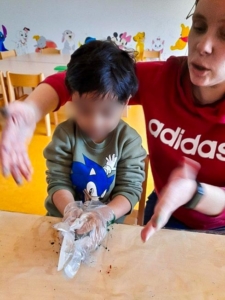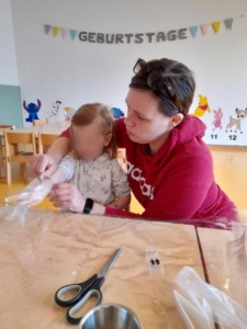 Mit dieser wertvollen Aktion wurden in unserer Kita Kranichgarten die Feinmotorik, Körperwahrnehmung, Farblehre und Sprache der Kita-Kinder gefördert.