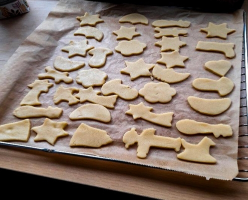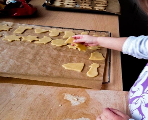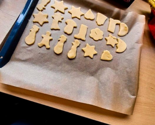 Ende letzten Jahres wurden in unserer Kita Kranichgarten ganz im Sinne der besinnlichen Tage leckere Plätzchen gebacken. Dabei durfte sich jedes Kind verschiedene Keksformen aussuchen, um den Teig auszustechen. Neben den Klassikern wie Schneemännern, Sternen und Lebkuchenmännern, gab es auch Ampelmännchen, Pilze, Herzen und viele andere Formen zur Auswahl. Nach dem Ausstechen wurden die rohen Plätzchen auf das Backblech gelegt und sobald das Blech voll war, wurden sie in den Ofen geschoben. Am Ende freuten sich alle Kinder und pädagogischen Fachkräfte darüber, die fertigen Kekse zum Snack zu verspeisen.
