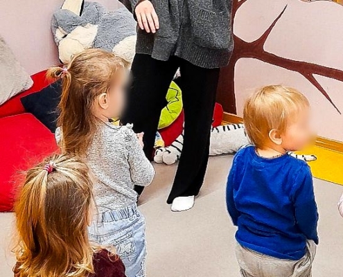 Im Januar haben die pädagogischen Fachkräfte unserer Kita Kranichgarten mit den Kita-Kindern Yoga gemacht. Die Kinder durften Tiere darstellen – einen Schmetterling, eine Schlange und einen Hund. Besonders gerne mochten die Kinder den Schmetterling und den Hund. Beim Schmetterling setzten sich die Großen und Kleinen in den Schneidersitz und wippten mit den Beinen auf und ab. Beim Hund gingen alle in den Vierfüßlerstand.
