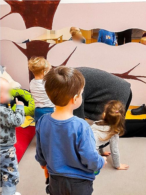 Im Januar haben die pädagogischen Fachkräfte unserer Kita Kranichgarten mit den Kita-Kindern Yoga gemacht. Die Kinder durften Tiere darstellen – einen Schmetterling, eine Schlange und einen Hund. Besonders gerne mochten die Kinder den Schmetterling und den Hund. Beim Schmetterling setzten sich die Großen und Kleinen in den Schneidersitz und wippten mit den Beinen auf und ab. Beim Hund gingen alle in den Vierfüßlerstand.