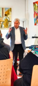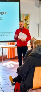 Prof. Dr. med. Wolfgang Huber und Peter Maurus von der AWO Heidelberg klärten ab 15 Uhr retrospektiv über die Covid 19-Pandemie auf und ordneten das damalige Management auf der umwelt-und sozialmedizinischen Dimension kritisch ein. Fast zwei Dutzend Interessent*innen hörten gespannt den Ausführungen der Vortragenden zu, während sie die Präsentation mit dem Thema „Betroffenheit“ eröffneten und über die Schließungen vieler wichtiger Institutionen wie Schulen, Kindergärten und Altenheimen berichteten. Versammlungsverbot, Impfpflicht und Lockdown. Auswirkungen, die für alle weltweit spürbar waren. Nach der wissenschaftlichen Einordnung der Erkrankung, und der Darlegung ihrer Symptome, beeinflussender Umweltfaktoren und den gesundheitlichen Spätfolgen (z.B. Long Covid), sprachen die Referenten auch über die wirtschaftlichen Folgen wie eine extrem hohe Arbeitslosenrate, die sich zu der Zeit unmittelbar abzeichnete.